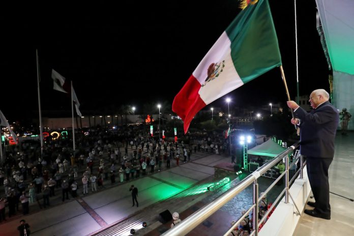 En un ambiente festivo y emotivo, enmarcado en las fiestas patrias; el Mnadatario ondeó la bandera nacional y con gran fervor patrio, entonó el Himno Nacional Mexicano, haciendo entrega del símbolo nacional a la escolta de la Tercera Zona Militar.