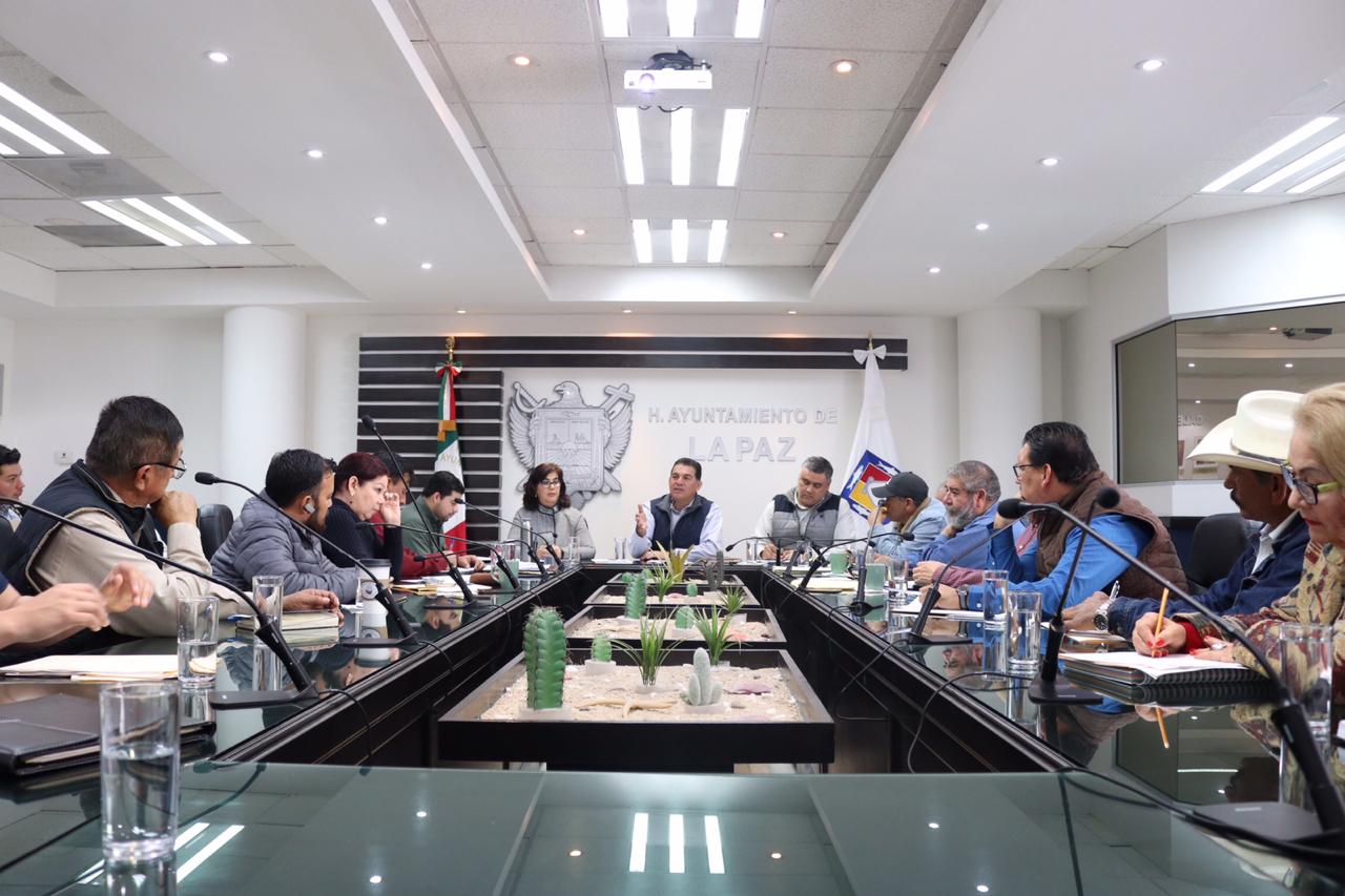 Con la finalidad de establecer una agenda de seguimiento y planeación de obras, actividades y acciones en general, a realizarse en las distintas delegaciones municipales de La Paz, se llevó a cabo una reunión de trabajo, encabezada por el Alcalde, Rubén Muñoz Álvarez; directores de las áreas municipales y delegados.
